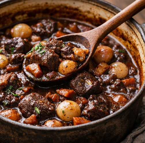Το Boeuf Bourguignon (μοσχάρι μπουργκινιόν) δεν είναι απλώς ένα μαγειρευτό φαγητό. Είναι μια μαγειρική δήλωση, ένα πιάτο που ενσαρκώνει τη φιλοσοφία της γαλλικής κουζίνας: σεβασμός στην πρώτη ύλη, τεχνική ακρίβεια και χρόνος. Γεννημένο στη Βουργουνδία, μια από τις πιο ιστορικές οινοπαραγωγικές περιοχές της Γαλλίας, το bourguignon αποτελεί ζωντανό παράδειγμα του πώς η τοπική παραγωγή και οι κοινωνικές ανάγκες διαμορφώνουν την κουζίνα.